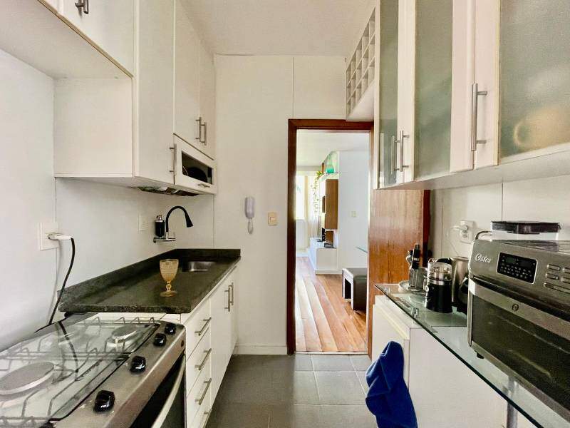 Cozinha independente, equipada com armários planejados, bancadas em granito e piso em cerâmica.