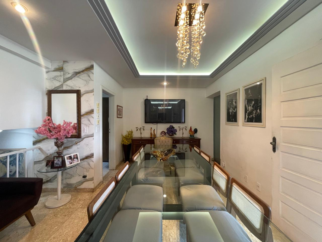 02 salas com piso em mármore, teto rebaixado em gesso, projeto luminotécnico e scotch bar;